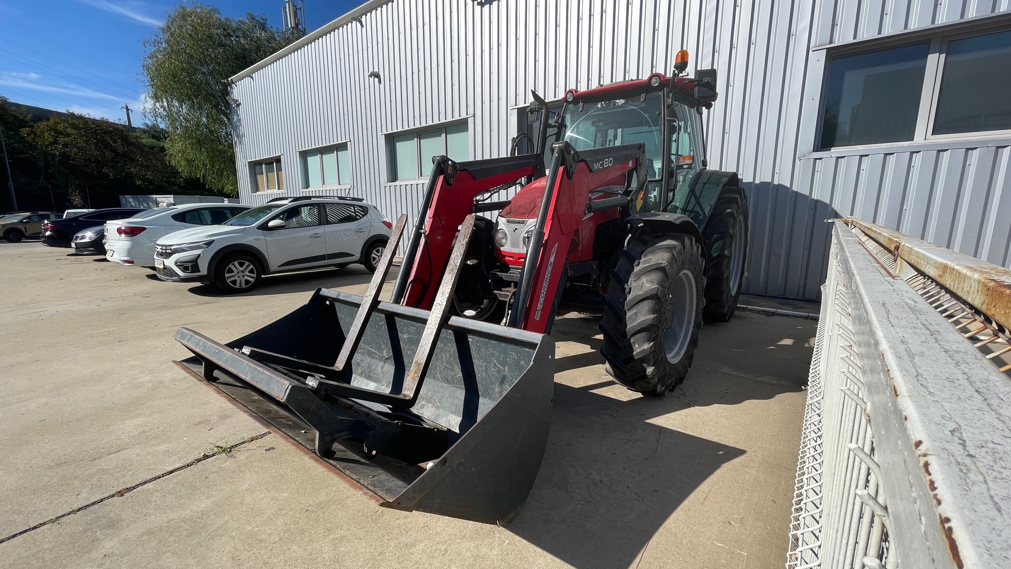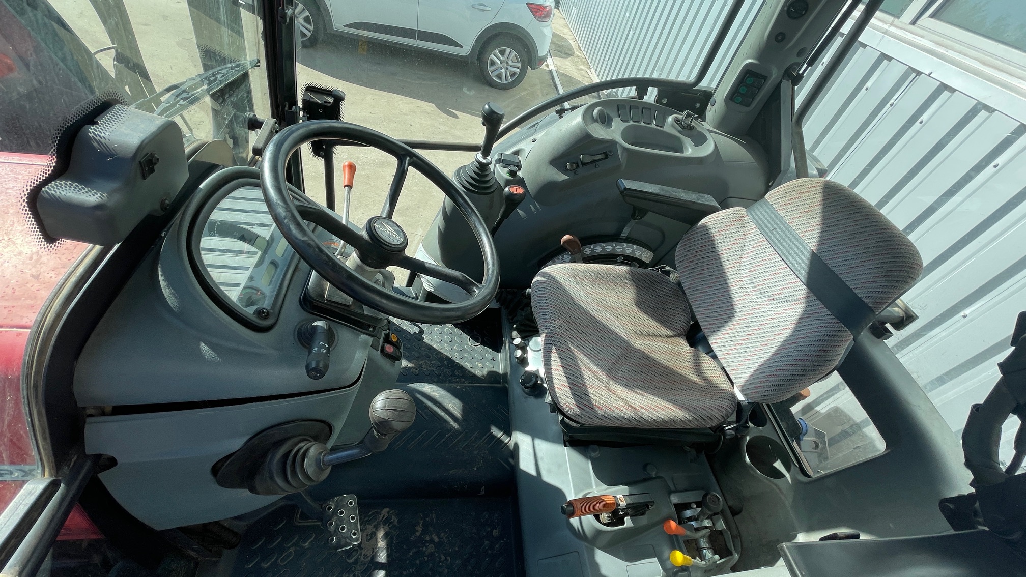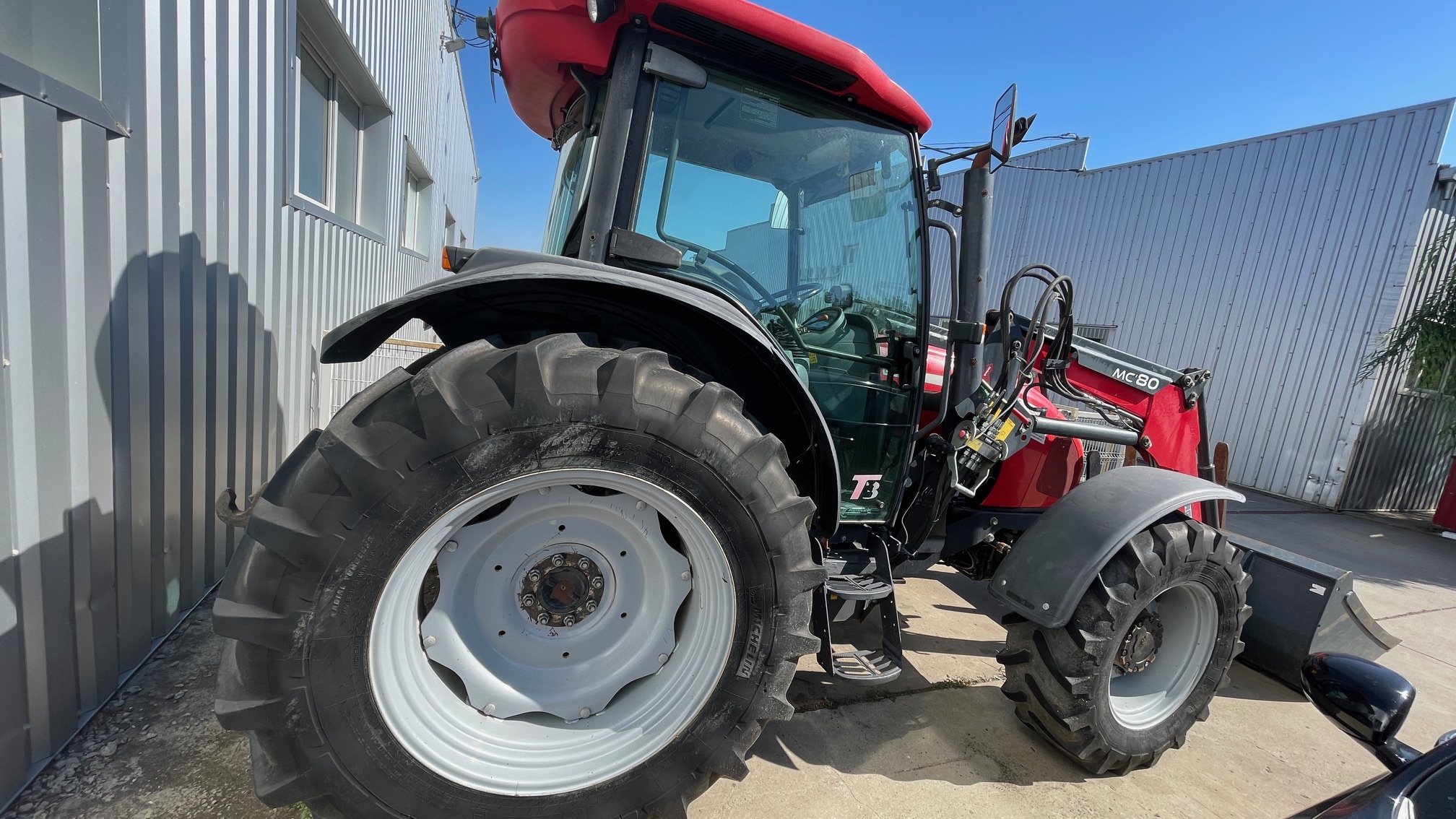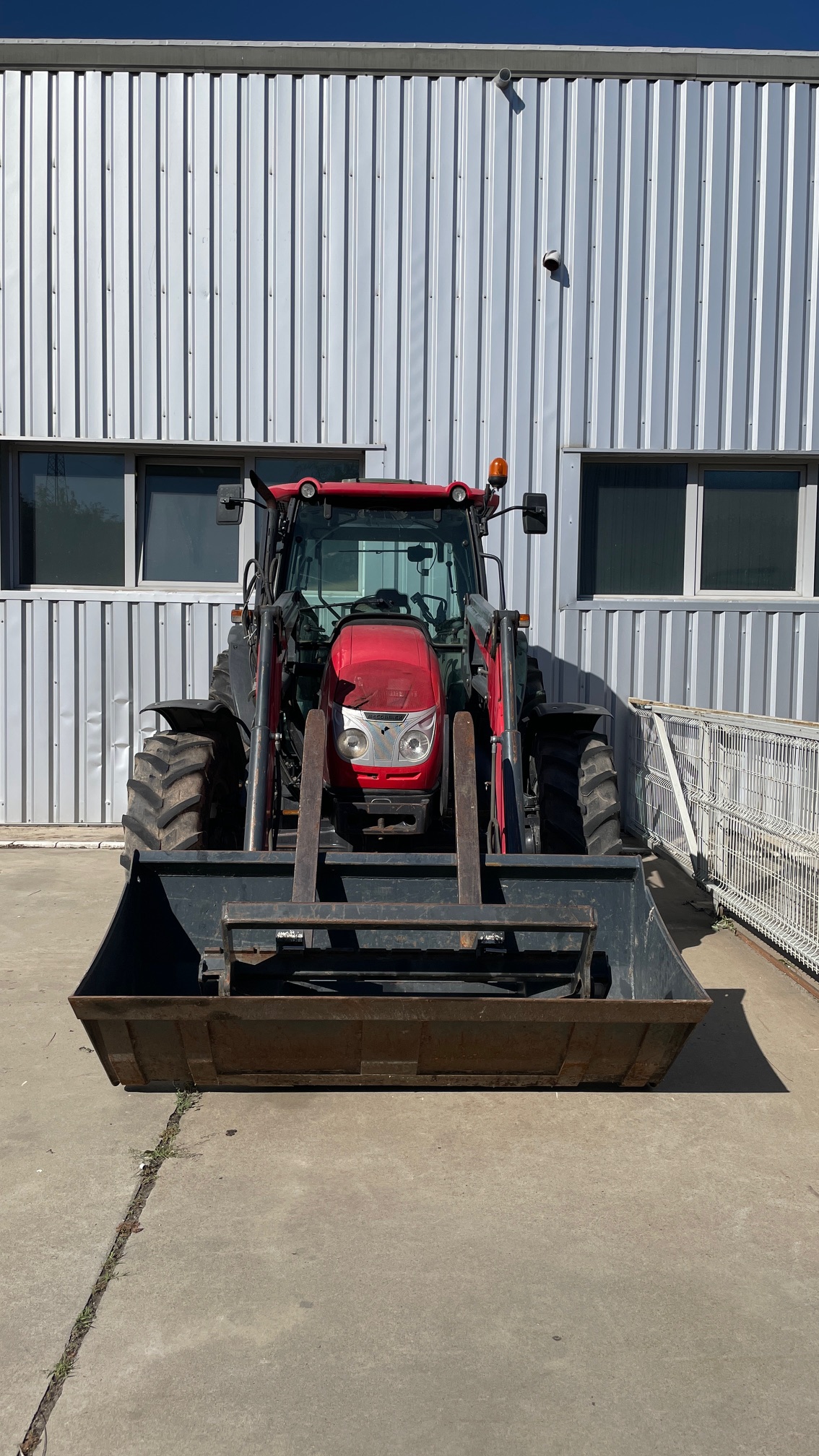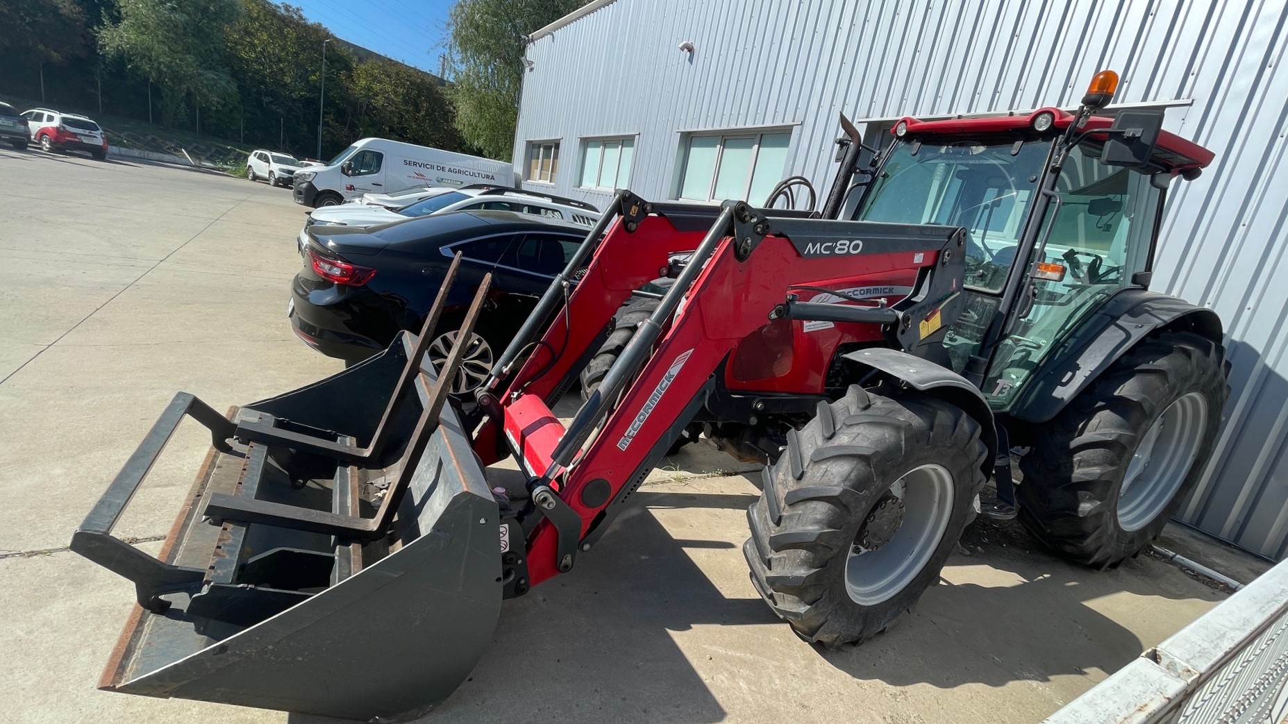 Tractor McCormick C110-MAX Caracteristici: Putere nominală 102 CP Masa fara greutati 3650 kg Capacitate ridicare spate 4350 kg Ampatament 2340 mm Ecartament 2110 mm Inaltime la cabina 2563 mm Lungime cu greutatile fata montate 4160 mm Garda la sol 475 mm Normă de poluare Tier 3 – Stage 3A Descriere motor: Motor Perkins 1104D-44, 4 cilindri, Turbo, Putere nominala 102 CP/75 Kw (ISO) Cuplu motor max 400 NM Rezervor carburant 102 litri Radiator pentru climatul temperat Sistem esapament vertical Filtru aer uscat Kit izolatie sonora pentru versiunea ROPS Ambreiaj dual 12" uscat Baterie acumulatori umeda Ventilator cu vasco-cuplaj standard pentru clima temperata Filtru de carburant + separator apa Esapament vertical lateral Descriere cutie viteze: Cuplare mecanica 4WD Blocare electro-hidraulica a diferentialului spate "heavy-duty" cu 4 sateliti Inversor mecanic sincronizat Sistem de franare independent spate PTO sincronizat cu viteza de inaintare Punte fata 4WD cu cuplare hidraulica cu frane Cutie de viteze mecanica 24+12 - 40km/h PTO mecanic 540/1000 rpm Descriere hidraulică: Sistem de ridicare spate in 3 puncte cu prindere rapida categoria 2 si tirant central mecanic Comanda mecanica pentru ridicatorul spate + Sistem ELS (Ergonomic Lift System) Capacitate ridicare spate 4350 kg 4 valve hidraulice dubla actiune (2 standard + 2 float) + Joystick Cupla de tractare cu ajustare manuala + bara de tractare Heavy Duty 2 cilindri suplimentari de ridicare Manevrabilitate: Coloana de directie cu reglare pe inaltime Scaun operator Deluxe cu suspensie pneumatica Scaun pasager Stergator luneta Sistem A/C Cabina cu protectie FOPS Descriere roţi: Marca anvelope Michelin Extensii aparatori de noroi spate si fata dimensiuni anvelope fata/spate Michelin 340/85R24 – 420/85R34 Aparatori fata mobile Altele: Centura de siguranta Suport pentru greutatile de lestare fata Cui de reremorcare fata Girofar Incarcator frontal M80C cu cupa cereale si furca de paleti Pret: 35000 + TVA